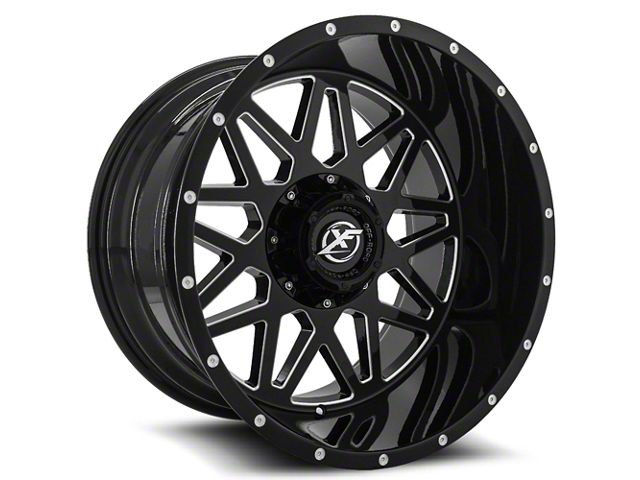 This 20x10 XF Offroad XF-211 Gloss Black and Milled 6-Lug Wheel; 20x10; -24mm Offset is completed in a high-quality gloss black finish with steel milled accents that will make everyone take notice. For added looks and strength, the wheel features a durable clear coat that withstands the rigors of daily driving.