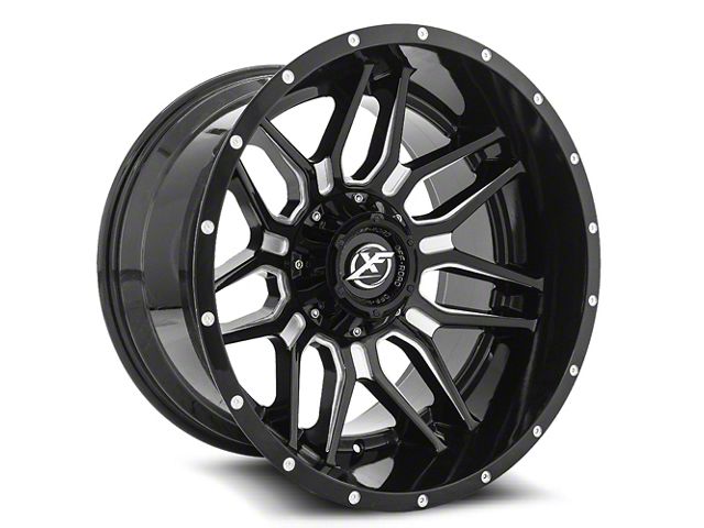 This 20x10 XF Offroad XF-222 Gloss Black and Milled 6-Lug Wheel; 20x10; -12mm Offset is completed in a high-quality gloss black finish with steel milled accents that will make everyone take notice. For added looks and strength, the wheel features a durable clear coat that withstands the rigors of daily driving.