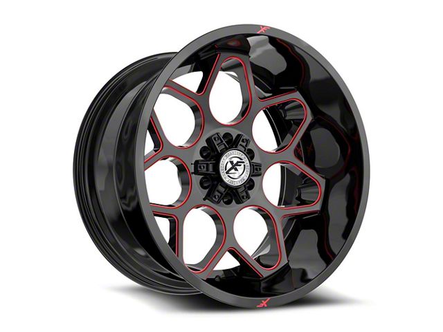 XF Offroad XF-233 Gloss Black and Red Milled 6-Lug Wheel; 20x10; -24mm Offset is a visually striking choice, offering a combination of rugged durability and modern styling. Its design complements off-road and sporty vehicles alike, enhancing the overall aesthetic appeal.
