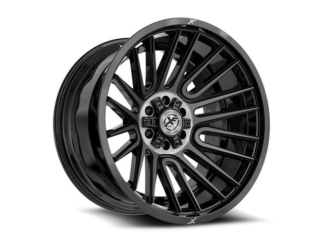XF Offroad XF-234 Gloss Black and Brushed Double Dark Tint 6-Lug Wheel; 20x10; -24mm Offset is a visually striking choice, offering a combination of rugged durability and modern styling. Its design complements off-road and sporty vehicles alike, enhancing the overall aesthetic appeal.
