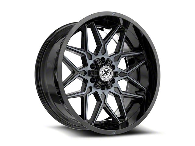 XF Offroad XF-238 Gloss Black and Machined Titanium Double Dark Tint 6-Lug Wheel; 20x10; -12mm Offset is a visually striking choice, offering a combination of rugged durability and modern styling. Its design complements off-road and sporty vehicles alike, enhancing the overall aesthetic appeal.