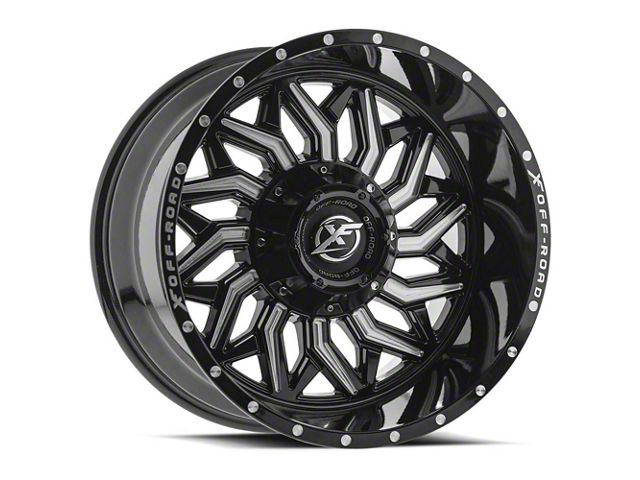 This 26x14 XF Offroad XF-228 Gloss Black and Milled 6-Lug Wheel; 26x14; -76mm Offset is completed in a high-quality gloss black finish with steel milled accents that will make everyone take notice. For added looks and strength, the wheel features a durable clear coat that withstands the rigors of daily driving.