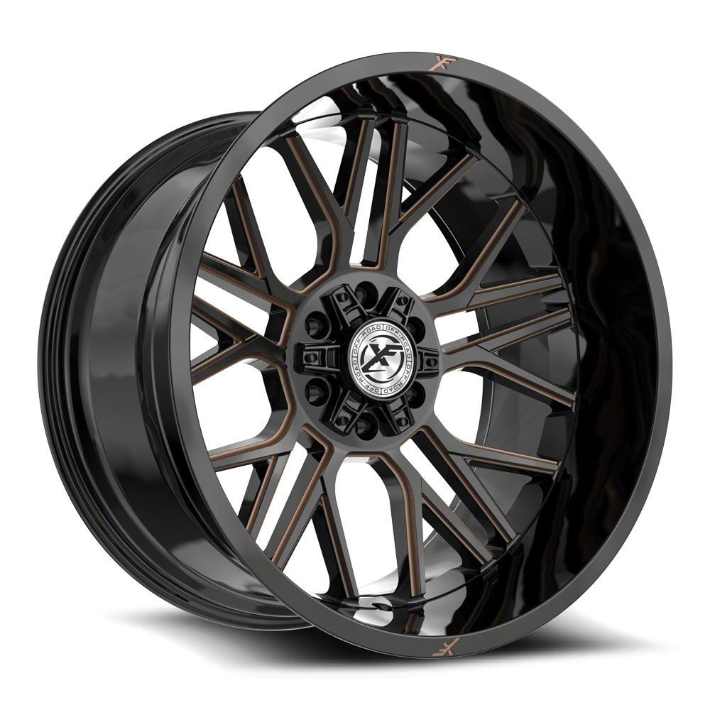 This 20x10 XF Offroad XF-235 Gloss Black and Bronze Milled 6-Lug Wheel; 20x10; -24mm Offset is completed in a high-quality gloss black finish with bronze milled accents to make your wheel the envy of everyone. For added looks and durability, the wheels has a durable clear coat that withstand the rigors of daily driving.
