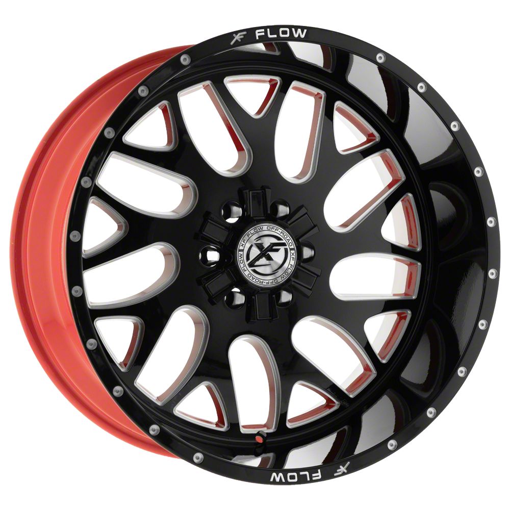 XFX Flow XFX-301 Gloss Black Milled with Red Inner 6-Lug Wheel; 24x14; -76mm Offset This wheel features sophisticated styling that enhances your vehicle's appearance with refined design elements and premium craftsmanship. Its distinctive aesthetic provides an upgraded look that complements a wide range of vehicles. The thoughtful engineering ensures a proper fit while delivering lasting visual appeal.