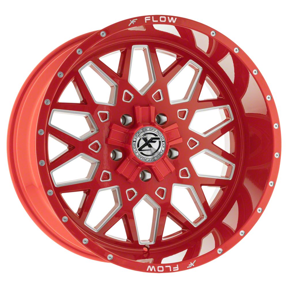 XFX Flow XFX-307 Red and Milled 5-Lug Wheel; 22x12; -44mm Offset This wheel features sophisticated styling that enhances your vehicle's appearance with refined design elements and premium craftsmanship. Its distinctive aesthetic provides an upgraded look that complements a wide range of vehicles. The thoughtful engineering ensures a proper fit while delivering lasting visual appeal.