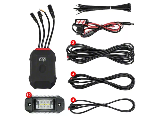 Application. The XK Glow LED Rock Light Kit is a universal fit product, making it compatible with a wide range of vehicles. Combining cutting-edge technology, rugged construction, and ease of installation, it is an excellent choice for enhancing your vehicle’s underbody illumination and style.