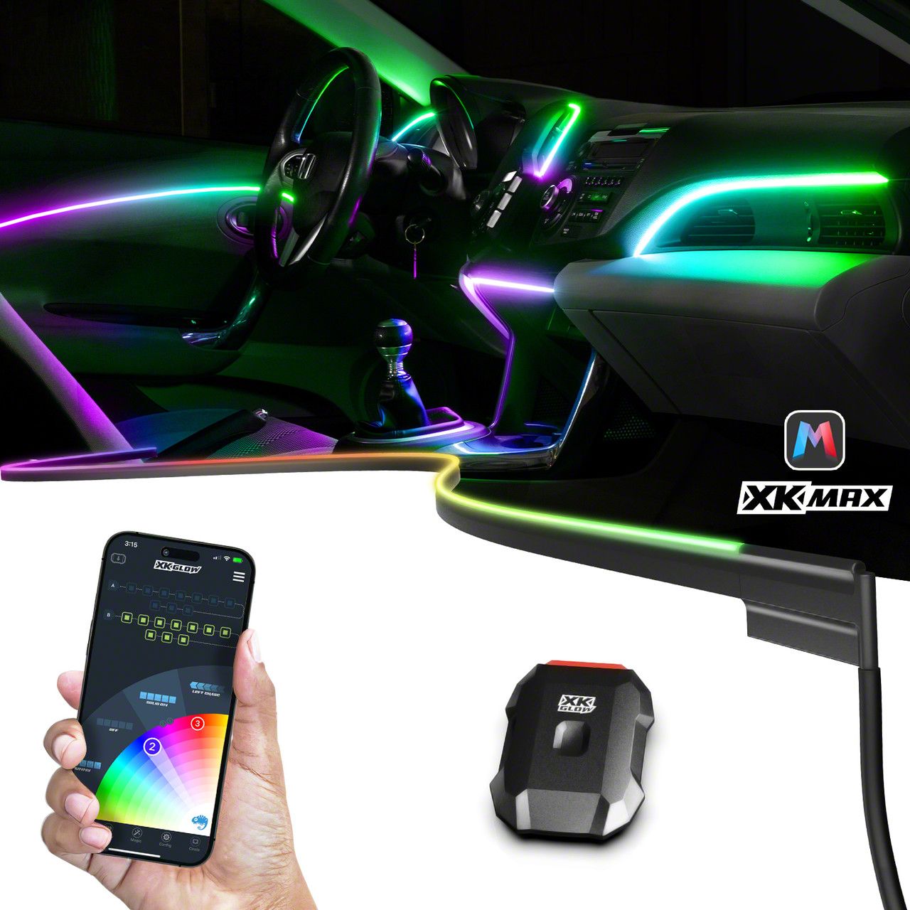 XK Glow XKmax Fiber Optic Interior Ambient Light Strip Kit with Bluetooth-Controlled App; 2 x 30-Inch/4 x 43-Inch (Universal; Some Adaptation May Be Required)