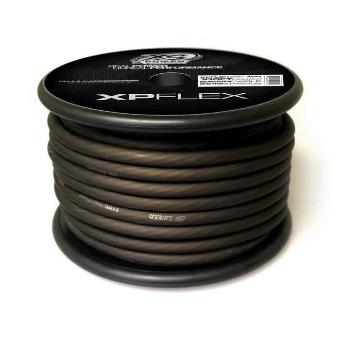 XP FLEX Black 2AWG Cable 10% Oxygen Free Copper(OFC) 90% Copper Clad Aluminum(CCA) 2,940 Strand Count Soft Touch PVC Casing XP Flex Cable exceeds the industry CEA-2015 cabling standards and is True AWG cable. The XP Flex Cable is also designed to be super flexible and easy to use in any installation. XP Flex is available as shown in 100ft spools.