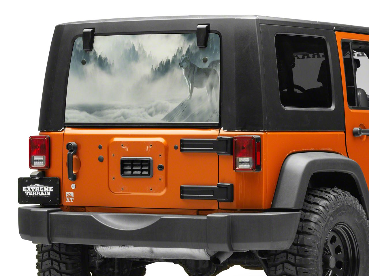 Application. This Perforated Wolf Rear Window Decal will fit all 1966-2026 Jeep CJ and Wrangler hard top models. Please note that this rear window decal is designed to be applied to the outside of the glass only, trimming is required for installation.