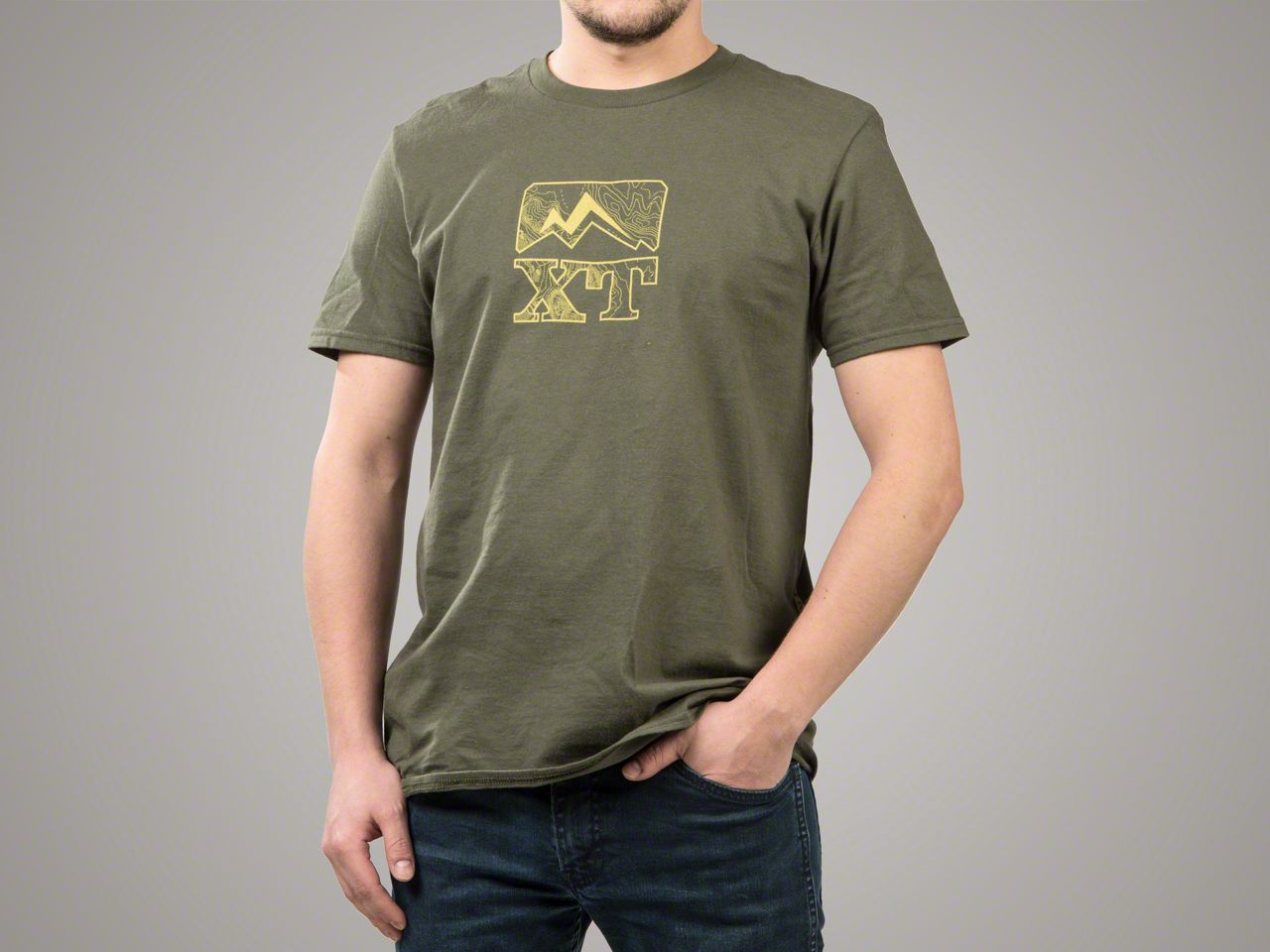 ExtremeTerrain Icon. The ExtremeTerrain Militia T-Shirt features a topographic ExtremeTerrain Icon across the front and an ExtremeTerrain Banner down the left side. This military green short sleeve t-shirt is the perfect piece of apparel for trail runs, Jeep events, or just hanging out with fellow Wrangler enthusiasts.