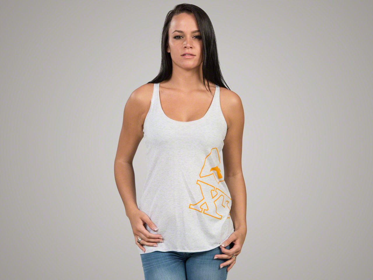 ExtremeTerrain Icon. The ExtremeTerrain Racer Back Tank Top features the XT Icon in classic orange coloring with an asymmetrical positioning on the lower left side. This heather white tank top is the perfect piece of apparel to keep you cool on trail runs, during Jeep events, or just hanging out with fellow Wrangler enthusiasts.