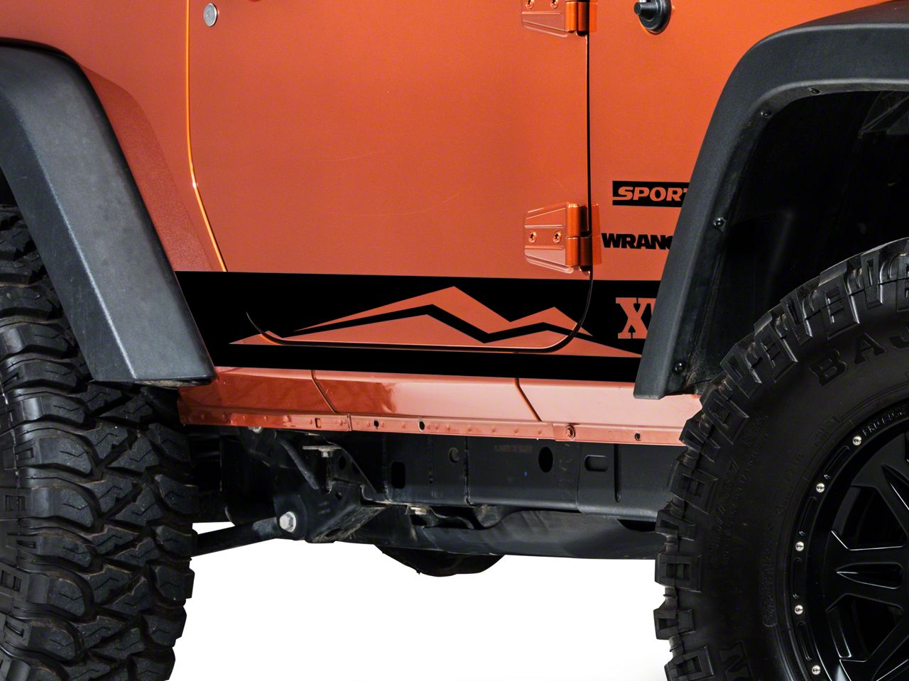 XT Styling. Give your Wrangler cool styling with a set of Gloss Black Triple Rocker Stripes with the ExtremeTerrain Mountain Range.