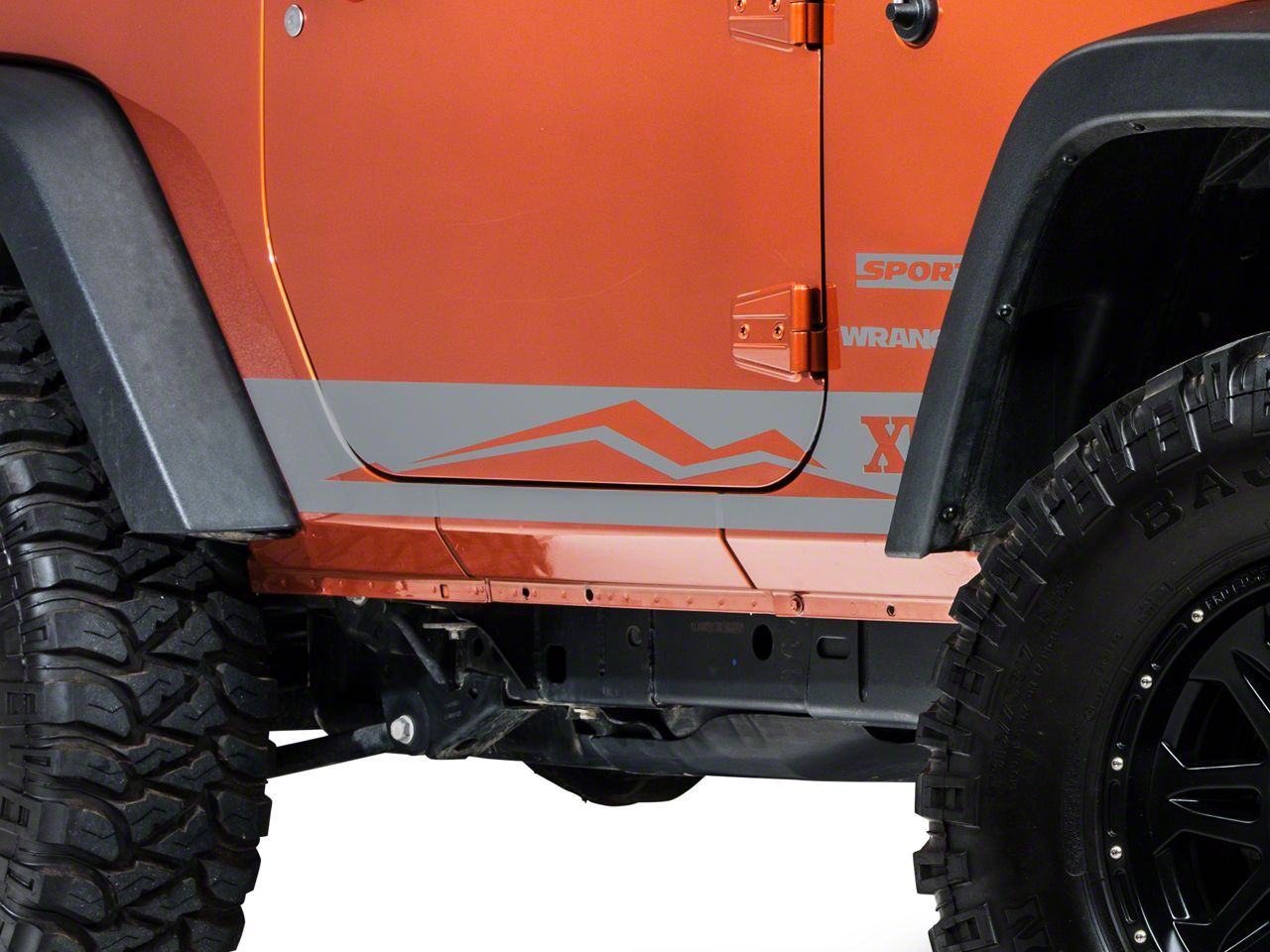 XT Styling. Give your Wrangler cool styling with a set of Silver Triple Rocker Stripes with the ExtremeTerrain Mountain Range.