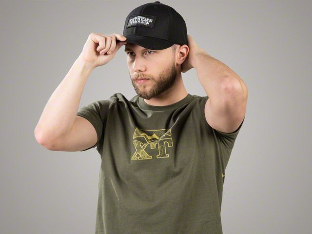 ExtremeTerrain Hat. Show your Wrangler pride with an ExtremeTerrain Stretch Fit Cap. This stylish black hat features an ExtremeTerrain patch logo across the front and is just what you need to keep the sun out of your eyes when the top is off. This hat is the perfect piece of apparel for trail runs, Jeep events, or just hanging out with other Wrangler enthusiasts.