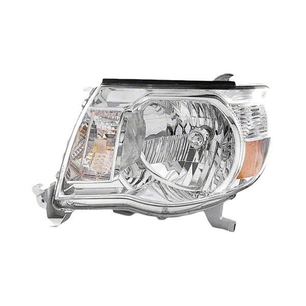 Application. This Driver Side Headlight with Chrome Housing and Clear Lens fits the 2005-2011 Toyota Tacoma, excluding Sport models.
