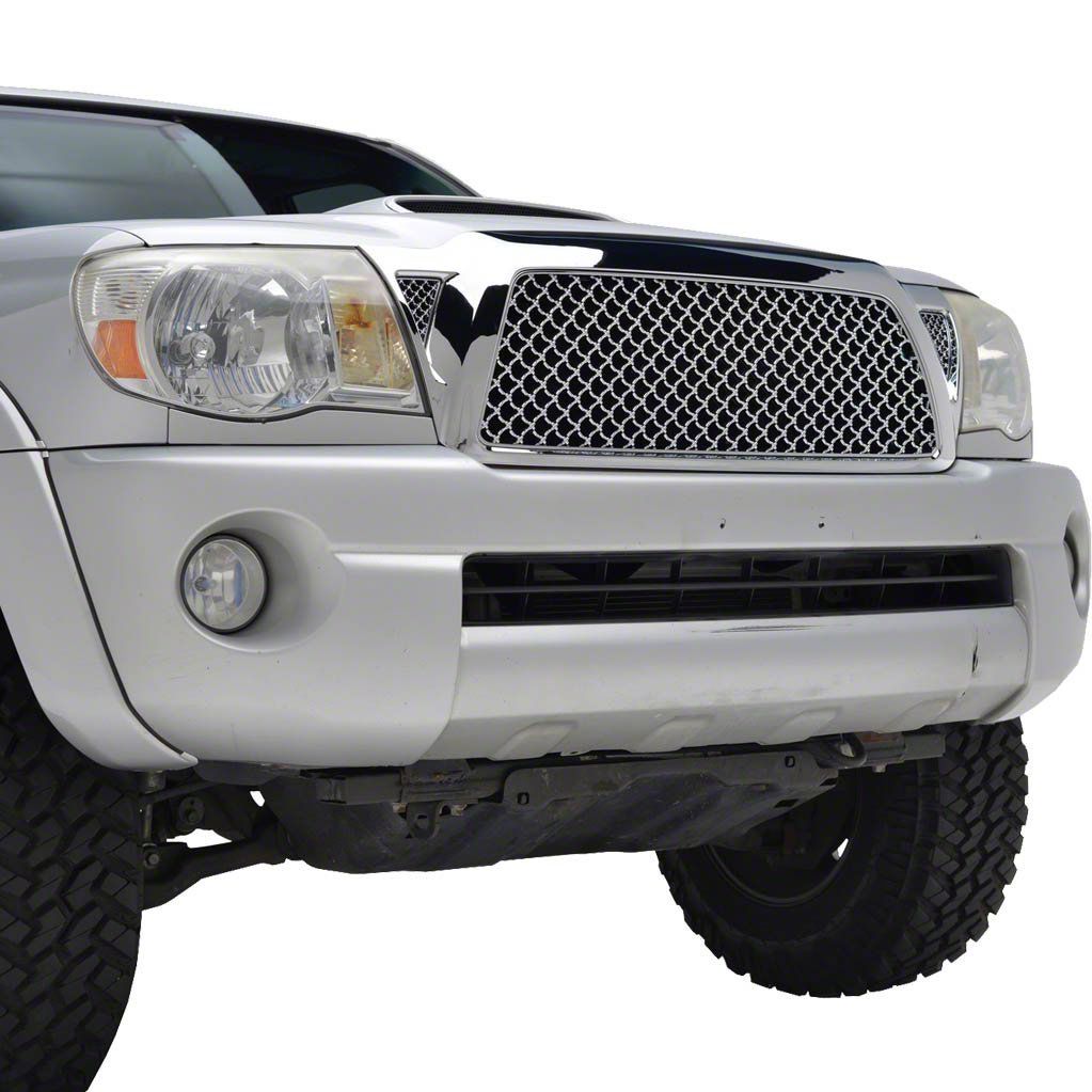 Application. This Wire Mesh Upper Replacement Grille; Chrome fits 2005-2011 Toyota Tacomas.