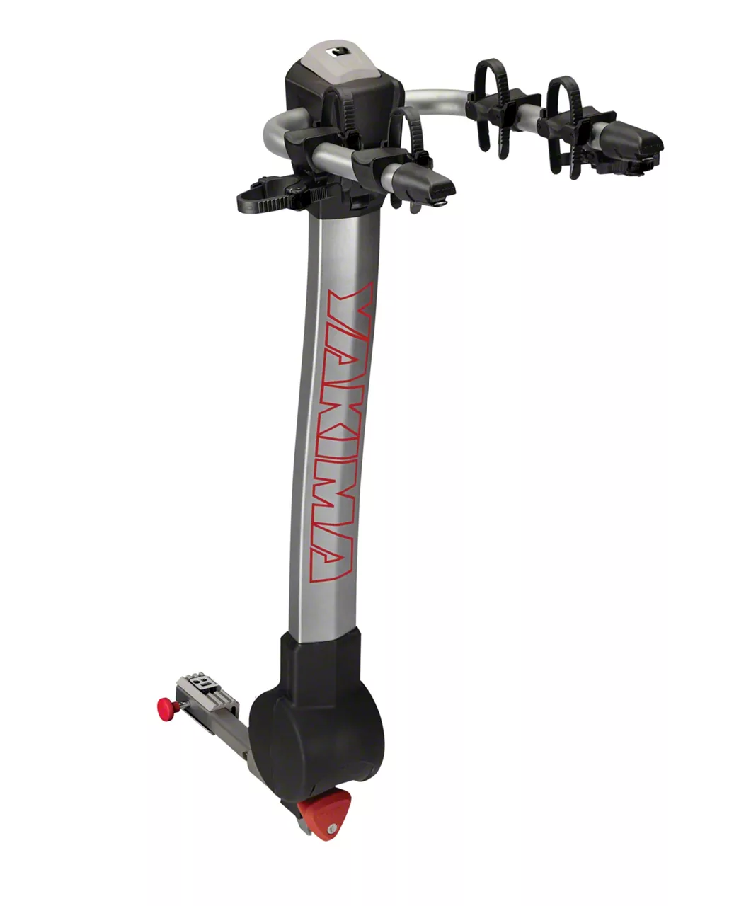 Effortless Bike Transport. Experience the ease and convenience of transporting your bikes with the Yakima RidgeBack Tilt-Away Hitch Bike Rack; Carries 2 Bikes. Designed to securely carry up to 2 bikes, this rack is the perfect companion for your cycling trips, whether near or far. The innovative tilt-away feature allows for quick and easy access to your vehicle's trunk or hatch without the need to remove the bikes. For added security, the RidgeBack includes an integrated locking system that keeps your bikes safe during stops. Travel with peace of mind, knowing your bikes are secure at all times.