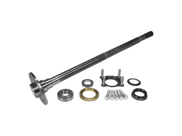 Fits Dana 44/220mm differential32 splineMeasures 31.56" longLeft, rear axleIncludes axle bearing, seal, bearing retainers, wheel studs, ABS ring and dust shieldTechnical NotesNot Common in USA ( Fits International Applications); Fits with Axle Code DRE = Narrow Track M220; And with DSE = E-Locker Rear Axle; Left Hand= 31.56" Long Axle; Small Bearing (Set10) Axle = 1.562" ID / 2.875" OD Bearing
