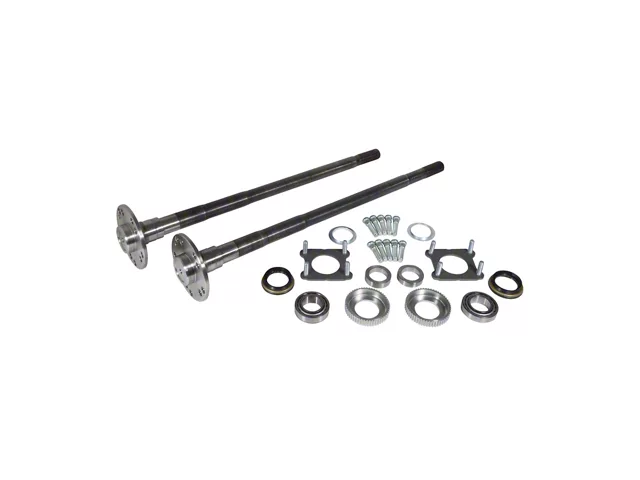 Fits Dana 44/M220 differential32 splineLH axle shaft measures 32.2” longRH axle shaft measures 33.9” longFor both sidesHeavy duty 4340 chromoly constructionIncludes two axle shafts, axle bearings, seals, bearing retainers, wheel studs, ABS ring, and dust shieldTechnical NotesFits with Axle Code DRF = Wide Track M220; And with DSE or DSH = E-Locker Rear Axle; Large Bearing Axles = 1.771" ID / 3.150" OD Bearing
