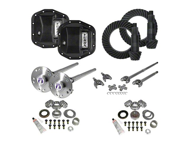Improved Performance. Made for the Jeep Gladiator JT models, this Yukon Gear Axle Ring Pinion and Gear Kit comes in a raw metal and matte black finish. Built as a direct replacement kit, this front and rear Dana 44 model has a 4.56 gear ratio. This kit includes differential covers with front and rear axles and offers to improve your ride’s traction and performance on or off-road.