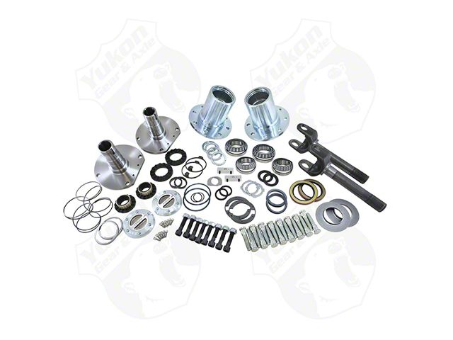 Everything Needed for Installation. The kit comes with everything you need for installation. This includes locking hubs, spindles, wheel hubs, outer axles, bearings, seals, and the tools needed to fit the kit. The outer axles have Spicer 5-760X U-Joints pre-installed.