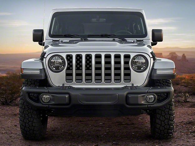 Patriotic Grille Upgrade. The ZKD Customs Grille Insert is a stylish and functional addition designed to elevate the front-end aesthetics of your Jeep Gladiator JT. Featuring a Black and Dark Gray American Flag design, this grille insert adds a patriotic touch while maintaining rugged durability.