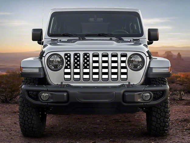 Custom Grille Insert. The ZKD Customs Grille Insert offers a rugged Black and White American Flag design that contours the front of your grille, providing a fierce and customized look for your Jeep Gladiator JT. Moreover, his grille insert lets you personalize your vehicle's appearance without restricting airflow.