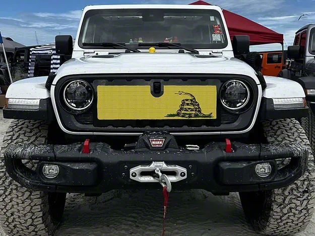 Application. The ZKD Customs Grille Insert with DTOM Flag fits 2024–2026 Jeep Gladiator JT models.