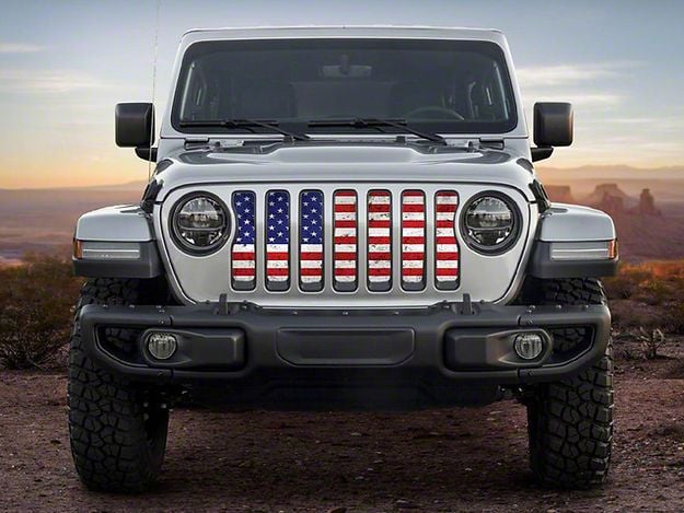 Custom Grille Insert. The ZKD Customs Grille Insert offers a rugged Merica Distressed design that contours the front of your grille, providing a fierce and customized look for your Jeep Gladiator JK. Moreover, his grille insert lets you personalize your vehicle's appearance without restricting airflow.