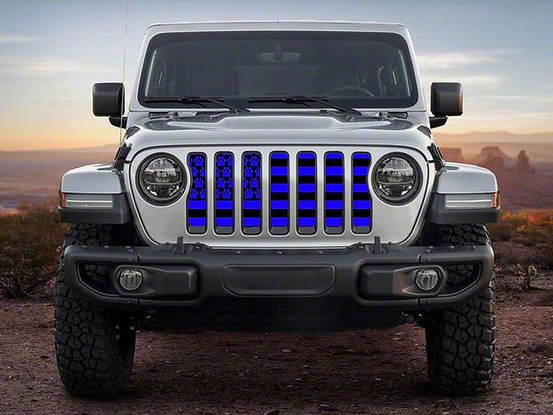 Custom Patriotic Styling. The ZKD Customs Grille Insert in Black and Blue Dog Paw Flag design brings a bold, unique look to the front end of your 2018-2023 Jeep Wrangler JL. Designed to showcase your love for pets and country, this grille insert is both stylish and functional. Made for all Gladiator models, it’s an easy way to upgrade your ride with American-made quality.
