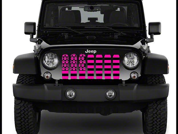 ZKD Customs Grille Insert; Black and Pink Dog Paw Flag (07-18 Jeep Wrangler JK)Find parts that fit my vehicle