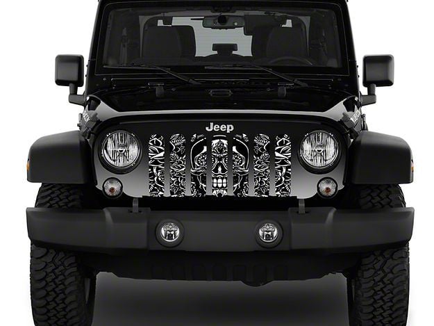 Unique Custom Design. The ZKD Customs Grille Insert features a striking "Day Of The Dead" theme, allowing Jeep owners to express their individuality while adding a touch of flair to their vehicle. Made from durable aluminum, this grille insert provides both style and protection for your Jeep's front end.