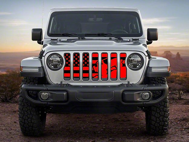 Application. This ZKD Customs Grille Insert fits 2018-2023 Jeep Wrangler JL models. It enhances your vehicle’s front-end appearance with a distinctive American flag design while ensuring airflow remains unrestricted for reliable engine performance.