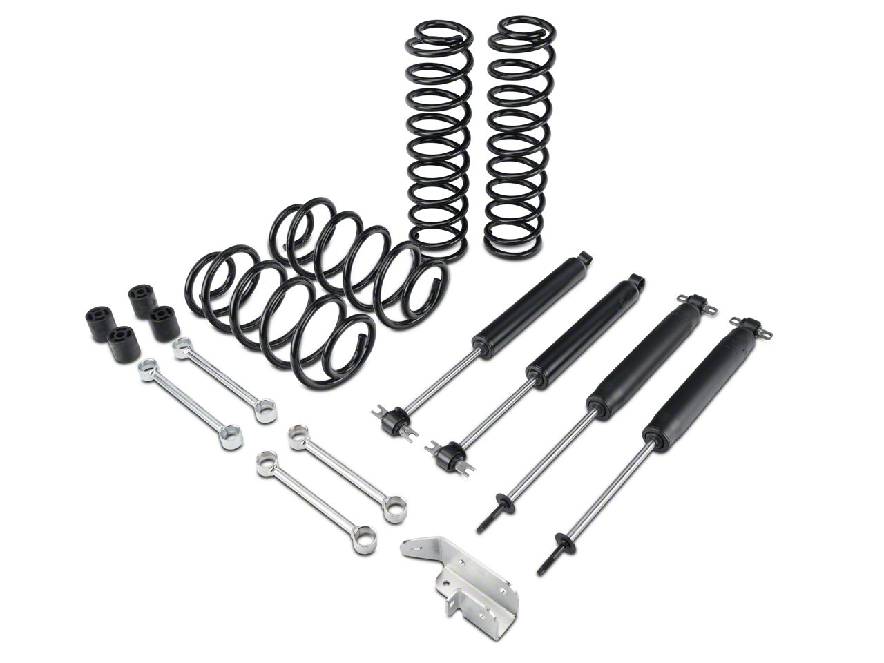 Complete Kit. The Zone Offroad 3 in. Lift Kit w/ Nitro Shocks is one of the most complete kits that you can purchase for your Jeep. This kit also comes with a transfer case drop kit, bar links, and bump stop extensions to improve your overall ride quality.