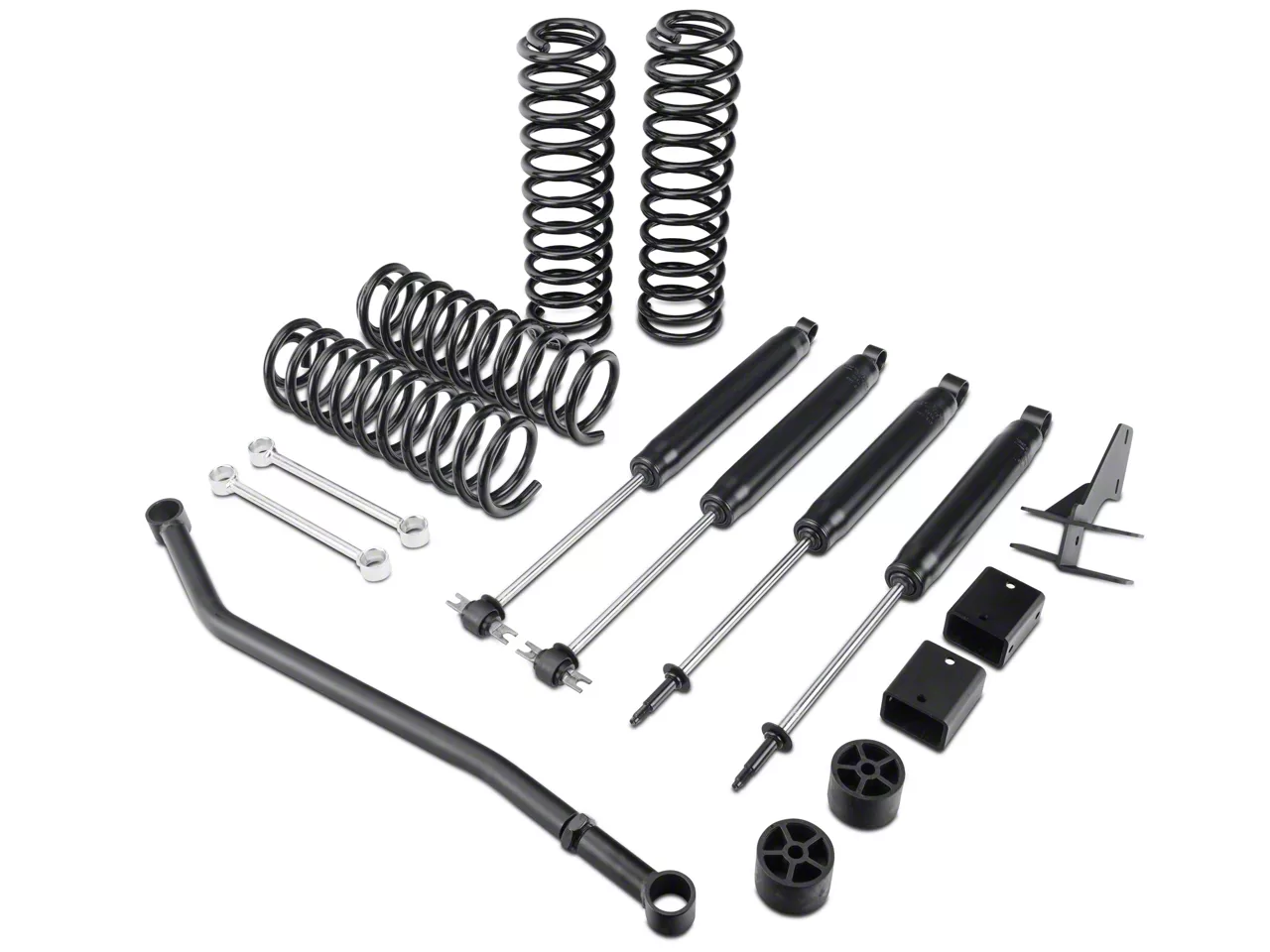 Additional Kit Contents. In addition to the quality shocks and springs, you will also receive additional components to upgrade your Jeep to provide you with the best ride. Some of the additional components include bar links, transfer case drop kit, and bump stop extensions.
