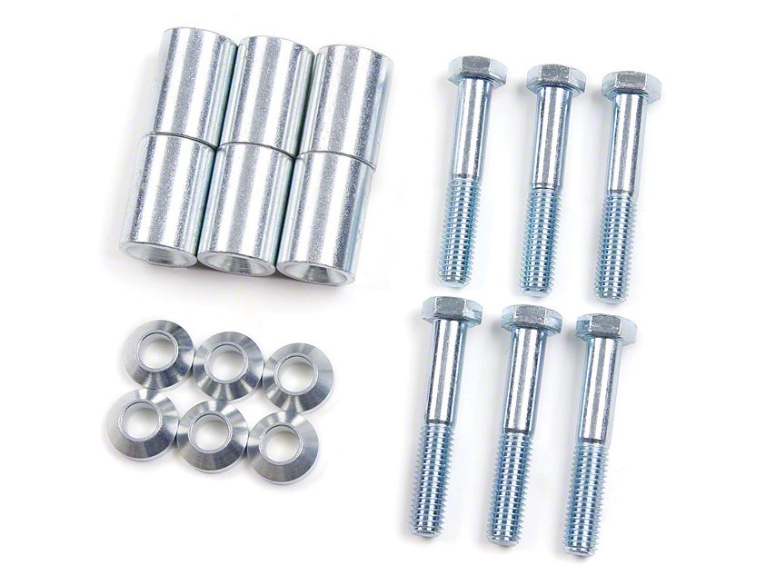 Durable Mounts. This Zone Offroad kit utilizes six heavy duty 1-5/8" poly spacers to drop the transfer case. Tough corrosion resistant extended length bolts replace the shorter factory bolts to hold the transfer case and spacers in place.