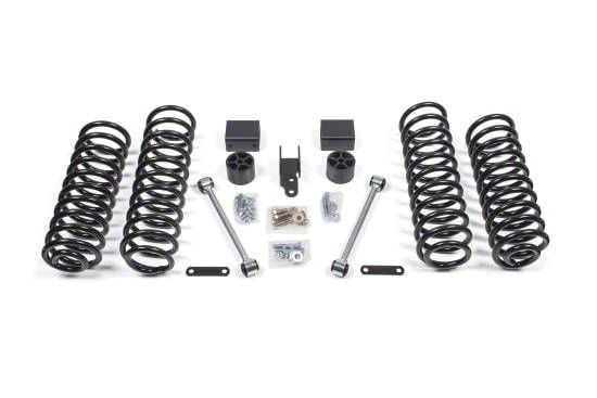 High-Strength Lifted Coil Springs. This suspension lift kit delivers its 4 inches of overall lift via a set of front and rear lifted coil springs. These springs are specially tuned to provide exceptional driving dynamics and handling feel, especially when working together with the Nitro shocks. Moreover, these springs are precision-formed from high-strength spring steel and are finished in a corrosion-protective black powder coating.