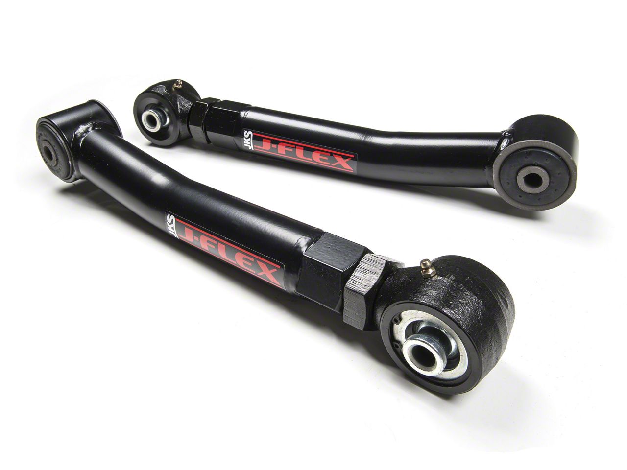 Necessary Upgrade. You should install these JKS J-Flex Adjustable Front Upper Control Arms to upgrade your Jeep Wrangler from the factory-made control arms. These control arms adhere to the adjustable arm Jeep design but use a jam nut setup and a forged adjustable flex end to enable adjusting the length.
