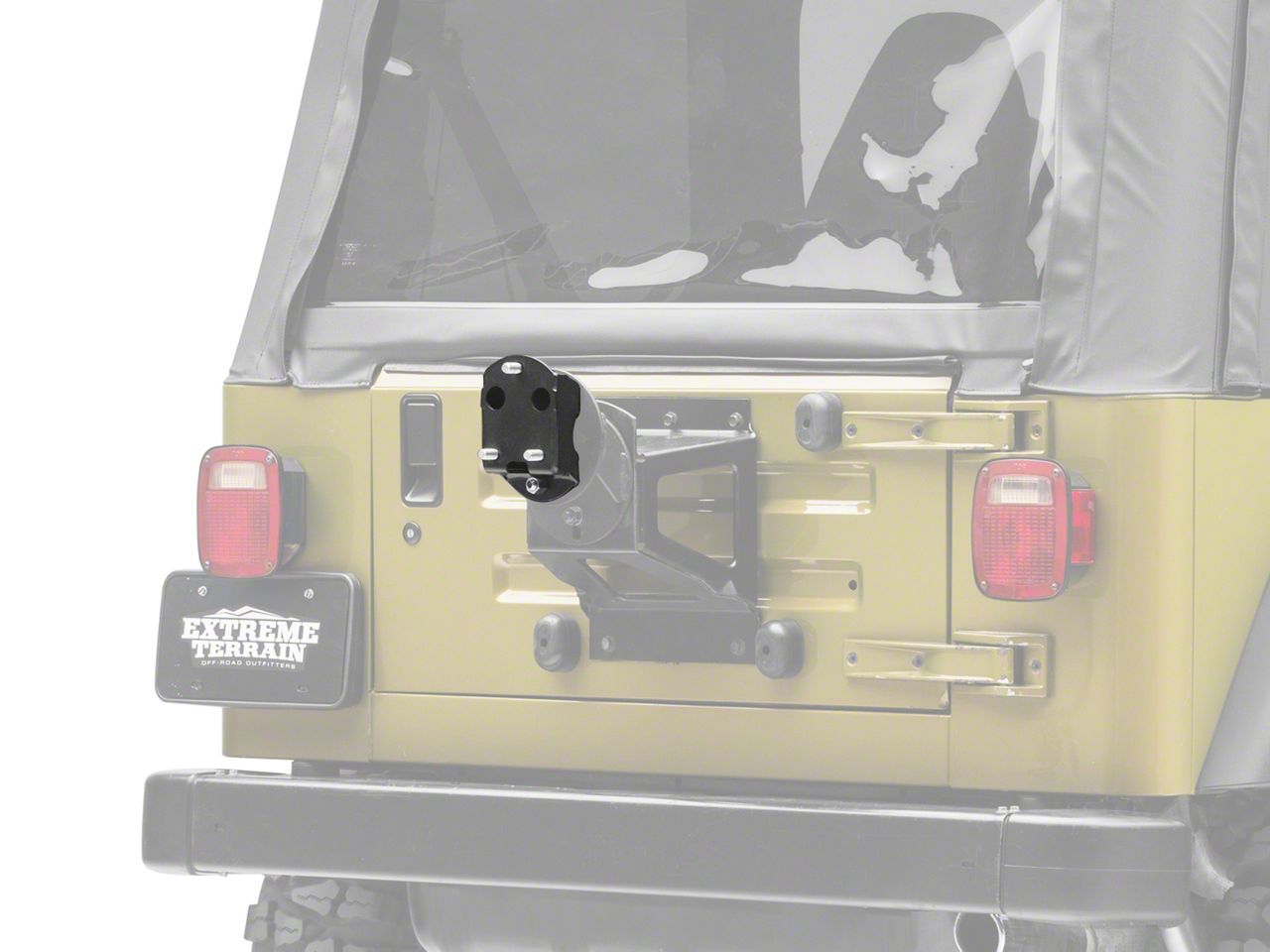 Go Pro With Tire Relocation. Made from the highest quality materials, the Zone Offroad Spare Tire Relocation Bracket is both reliable and durable. It is designed for the 1987-2006 Wrangler YJ & TJ.