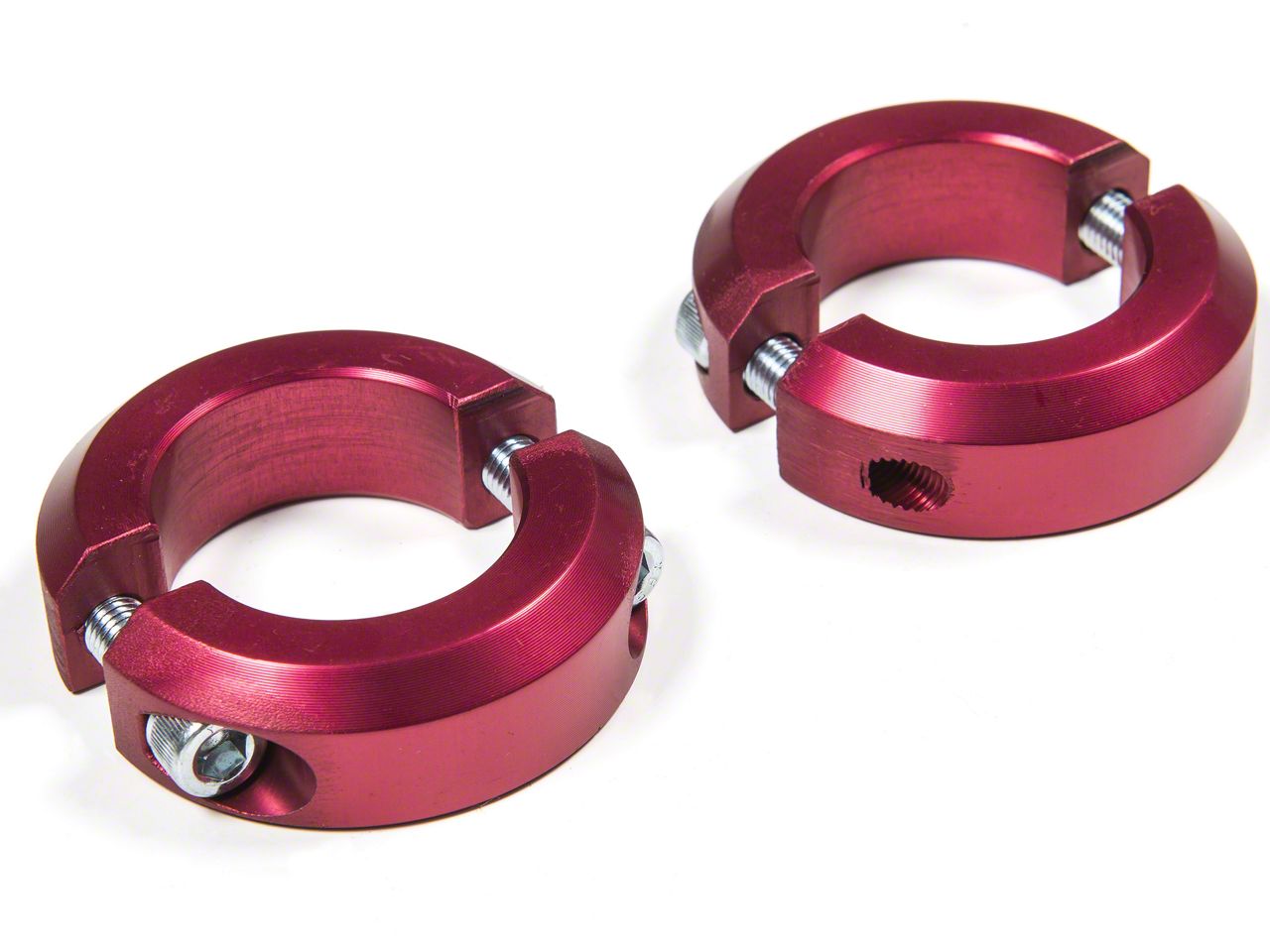 Superior Alloy Engineering. The Sway Bar Clamp Kit features a pair of clamps that have been precision machined from 6061-T6 aluminum, with a beveled edge to ensure correct seating against the rubber bushing of the sway bar itself instead of the sway bar mounting clamp. The two halves of the clamps are secured with socket head cap zinc-plated screws. A rich, durable JKS red anodized finished gives the clamps long-lasting ruggedness and attractive looks.