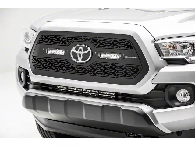 Solid Light Bar Mounts. Expand your Toyota Tacoma’s lighting capacity with these ZRoadz 20-inch LED Light Bar Behind Lower Grille Mounting Brackets. They have been specially engineered to provide solid mounting points for a 20-inch LED light bar installed behind the lower front grille of your vehicle. Light bar not included.